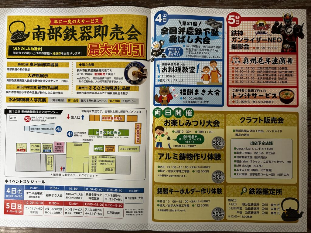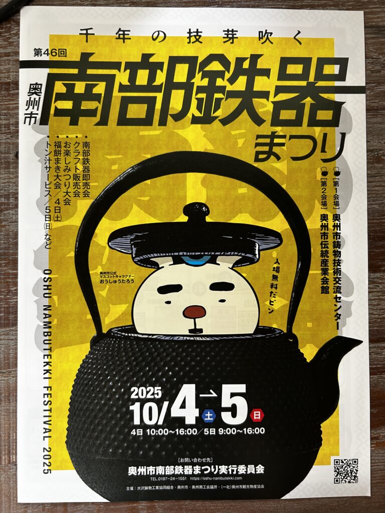 10/4.5 奥州市鋳物技術交流センターにて開催される、南部鉄器祭りにクラフト販売で参加いたします。